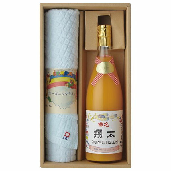 【内祝い おしゃれ お返し・1個から名入れ可】愛媛県産みかんジュース&オーガニックタオルセット(お名入れ) <納期約10〜12日(土日祝除く)><【出産内祝い オシャレ 出産祝い 結婚内祝い 結婚祝い】【ギフト オシャレ 七五三 初節句 おしゃれ かわいい】