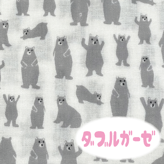 【ダブルガーゼ】手描き風くま【生地 くま 男の子 動物 モノトーン シンプル 肌触りのいい 柔らかな マスク ベビー用品 スタイ ハンカチ 赤ちゃん 枕カバー】